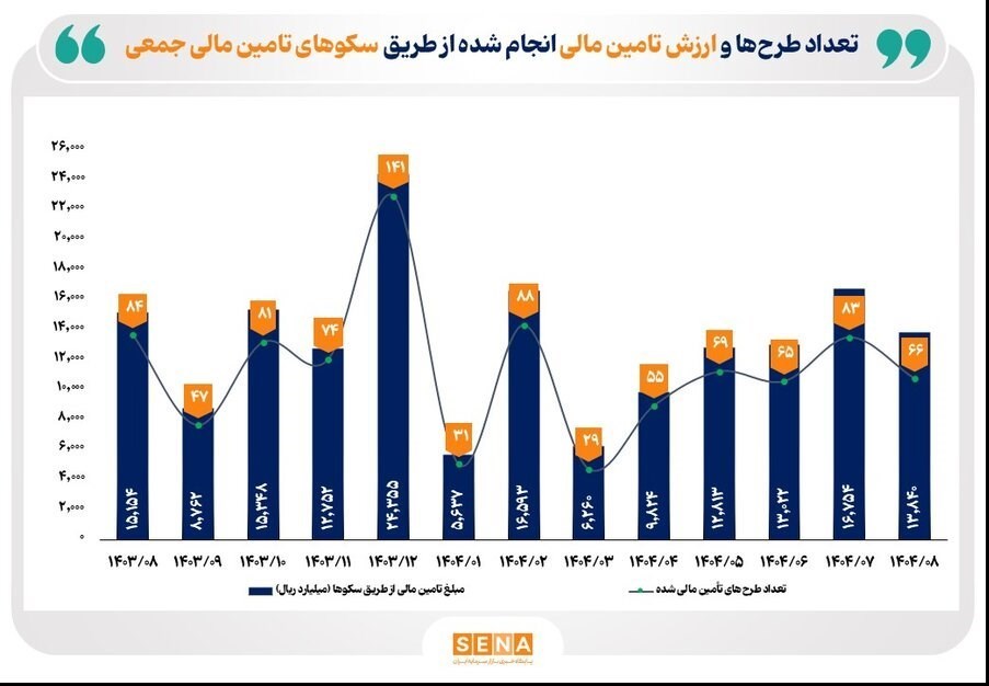 آمارها نشان میدهد بیشترین تامین مالی انجام شده در اسفند 1403 به ثبت رسیده و در این ماه حدود 2.5 همت برای 141 طرح تامین مالی شد.