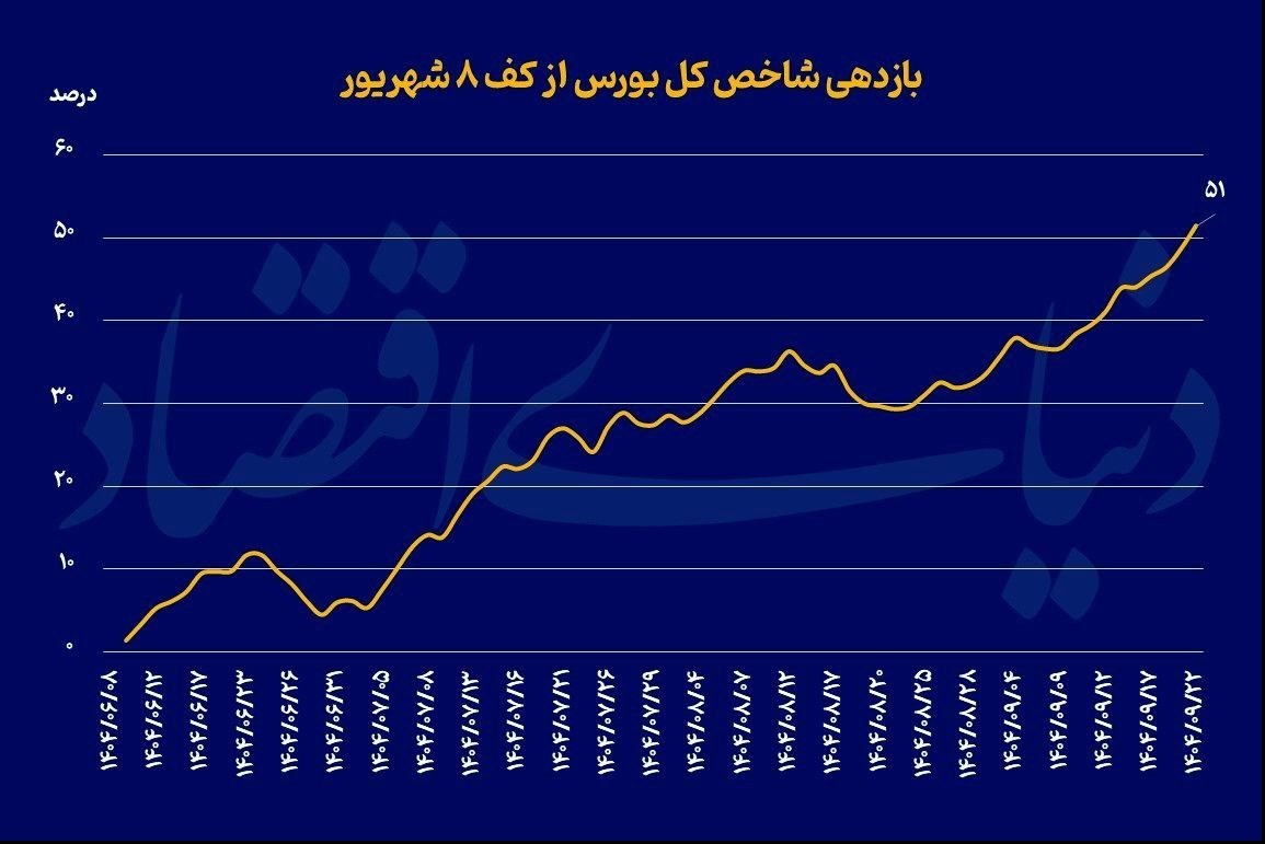 در فضای غبارآلود پس از جنگ، بورس تهران با خروج سرمایههای خرد حقیقی مواجه شد و شاخص کل در هشتم شهریورماه به کف 2میلیون و 395 هزار واحدی سقوط کرد. این افت عمیق، نمادی از غلبه رفتارهای محافظهکارانه در میان سرمایهگذاران و ترجیح نقدینگی بر داراییهای پرریسک بود. اما درست از همین نقطه، ورق بازار برگشت. کاهش تدریجی شدت ریسکهای سیاسی و فروکشکردن شوکهای سیستماتیک، زمینهساز بازگشت آرام نقدینگی به بازار سهام شد و شاخص کل از کف شهریورماه وارد یک روند صعودی تازه شد؛ روندی که تا پایان معاملات روز گذشته، بازدهی 51درصدی را برای نماگر اصلی بازار به همراه داشته است.