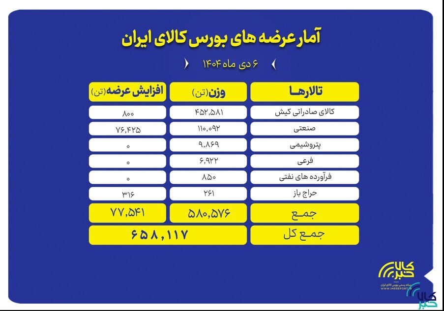 عصر بازار- تالارهای بورس کالای ایران امروز شنبه ۶ دی ماه میزبان عرضه ۶۵۸ هزار و ۱۱۷ تن انواع محصول است.