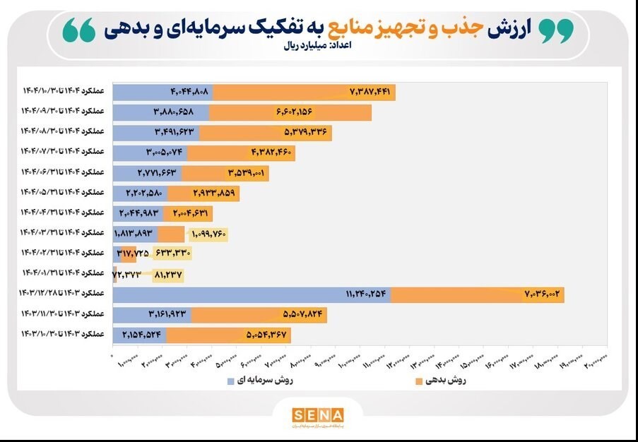 ارزش جذب و تجهیز منابع از بازار سرمایه در ۱۰ ماه امسال ۶۳ درصد رشد کرد