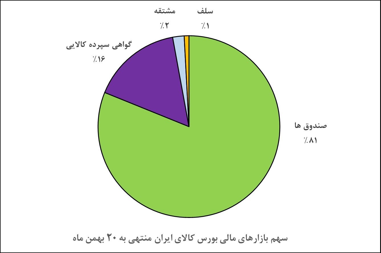 به گفته مدیر عامل بورس کالای ایران در حال حاضر حدود 44 درصد ارزش معاملات بورس کالا به بازار مالی اختصاص داشته و تا کنون حدود 17 میلیارد دلار معامله در بازار مالی انجام شده است انتظار میرود این رقم تا پایان سال به مرز 20 میلیارد دلار نزدیک شود.