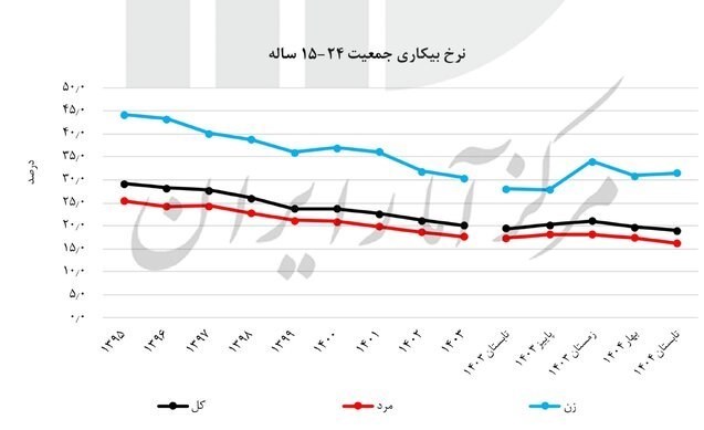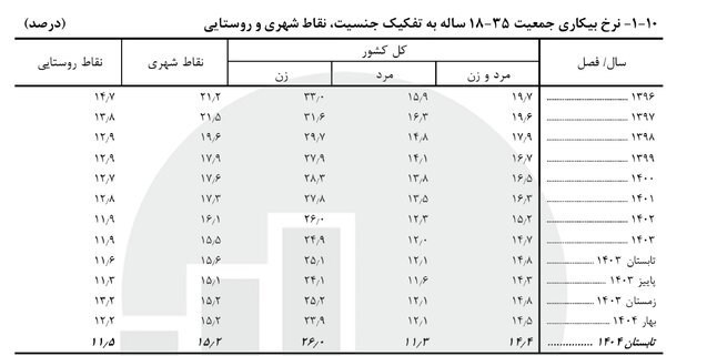 براساس این گزارش در بهار 1404 نیز نرخ بیکاری این بازه سنی 14.5 درصد و تابستان1404 نیز 14.4 درصد اعلام شده است.
