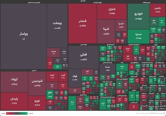 ارزش بازار در کانال 11.4 هزار همت ایستاد. ارزش معاملات امروز 599.4 همت و خُرد بیش از 19 همت بود. 51 درصد بازار سبزپوش و 369 نماد مثبت و 49 درصد بازار سرخ پوش و 347 نماد منفی شد.